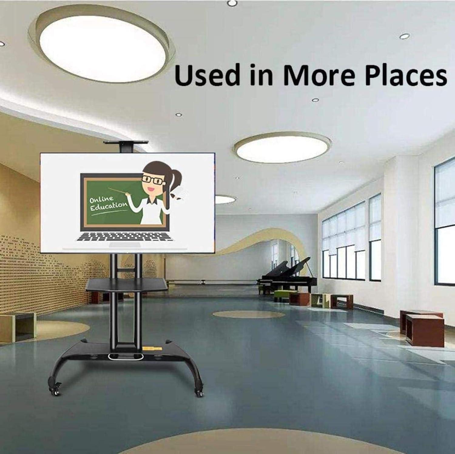 Beyond supporting our TV, this unit doubles as an organized entertainment hub with a solid metal middle shelf, perfect for storing DVD players, game consoles, or cable boxes. The shelf is securely fastened to prevent wobbling, contributing to the overall stability of the stand.The built-in cable management system helps keep messy wires neatly tucked away, maintaining a clean and tidy setup. Thanks to its lockable wheels, we can easily move the stand across different rooms, from bedrooms and conference halls to gyms and lecture rooms, enhancing its versatility across a wide range of environments.