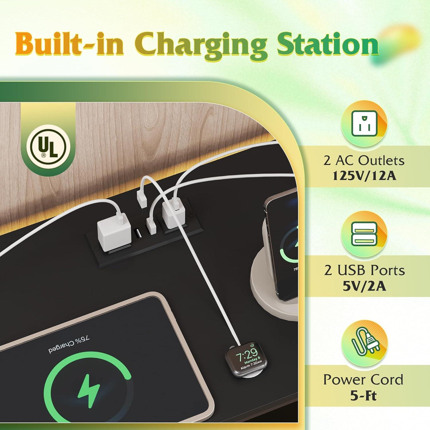 The built-in charging station is a standout feature that truly elevates organization and convenience in our living spaces. Equipped with 2 AC sockets and 2 USB ports, it allows us to power multiple devices concurrently-whether it’s a TV, game console, router, or a power strip-all neatly consolidated in one spot. The 1.5-meter flexible cable ensures easy placement without straining to reach outlets, while UL and ETL certifications give us peace of mind regarding electrical safety. This thoughtful integration cuts down on cable clutter,instantly improving desktop cleanliness by roughly 50%,which is remarkable for a product of this size.