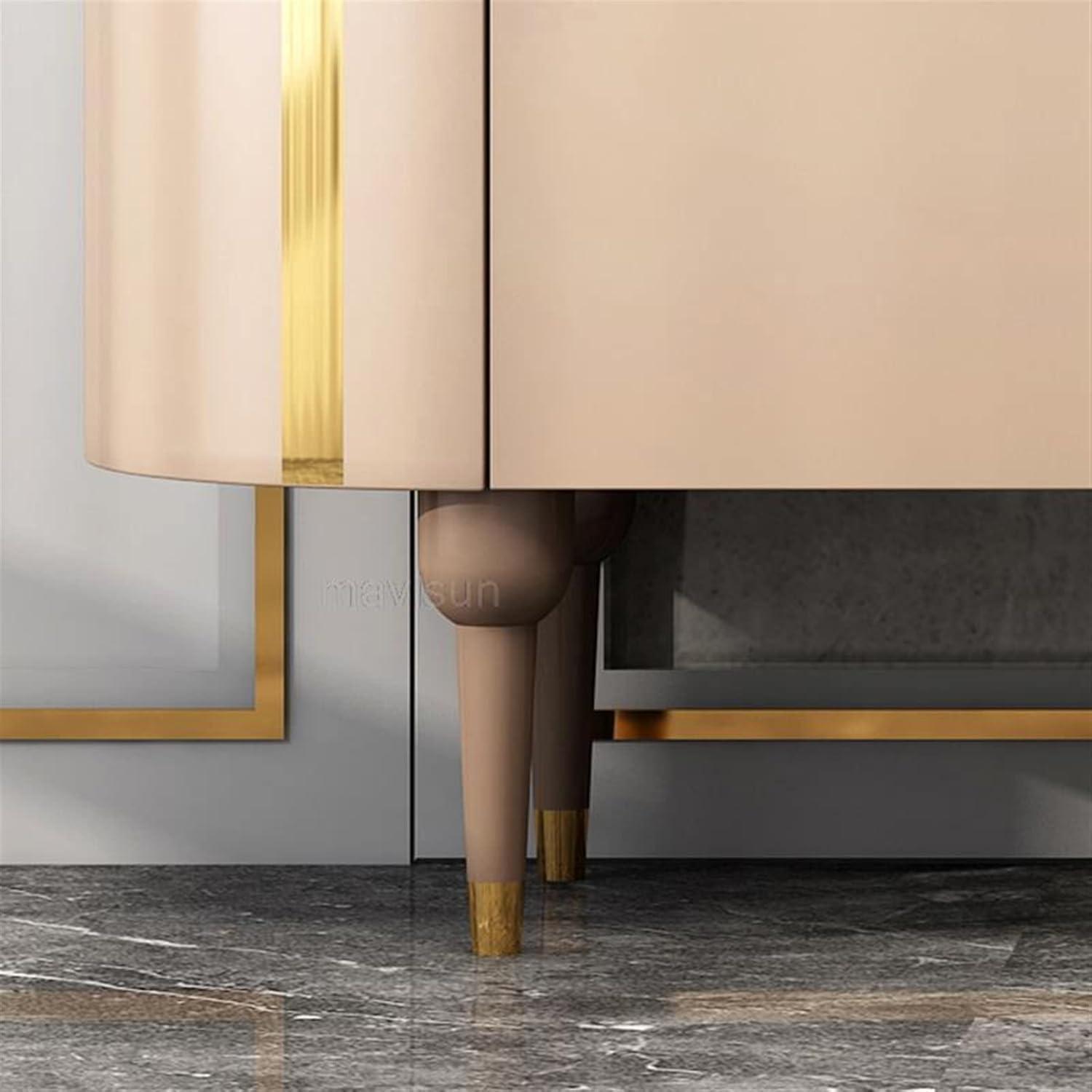 When placing various TV sizes on this cabinet,we’ve found its large rectangular surface provides exceptional stability for screens ranging from compact 32-inch models to expansive 75-inch displays. The design’s sturdy build effortlessly supports even heavier units without any wobbling or shifting, making it suitable for both modest bedroom setups and grand living room displays. The cabinet’s edge banding and solid materials ensure that no matter the size of the TV, the stand remains scratch-resistant and visually intact over time.