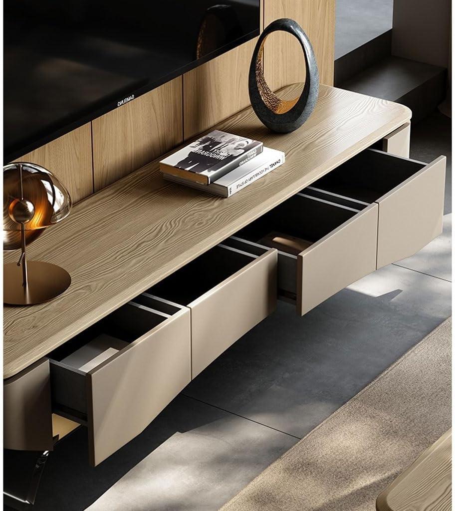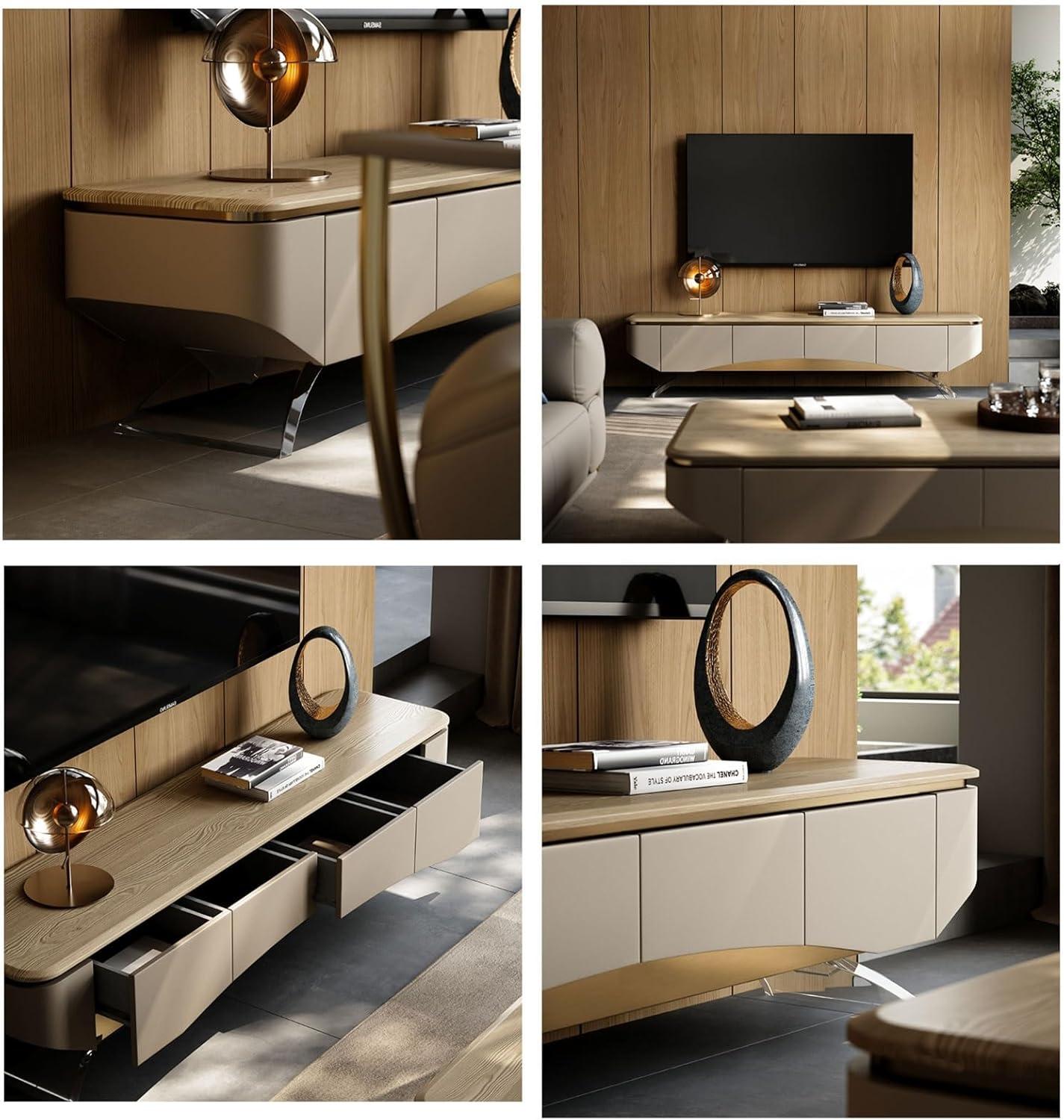 Beyond style, the practical features cater to diverse setups and needs. The four spacious storage drawers neatly hide away remotes, cables, and other essentials, reducing clutter in any room style. A thoughtful cable management system ensures wires are tucked out of sight, making the cabinet ideal for sleek modern setups and cozy traditional rooms alike. Here’s a quick look at how it fits various environments: