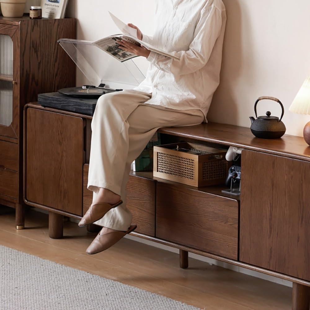 After spending time with this rustic entertainment center, we appreciate how it balances form and function beautifully. Its solid wood construction and walnut finish bring warmth and character that complement various interior styles, from farmhouse to modern rustic. The generous dimensions (200cm length, 35cm width, 65cm height) ensure ample surface area for larger TVs, while multiple open compartments provide practical storage for media devices, books, gaming consoles, and everyday essentials like remote controls and snacks. Assembly is straightforward, making it accessible even for those without much DIY experience.