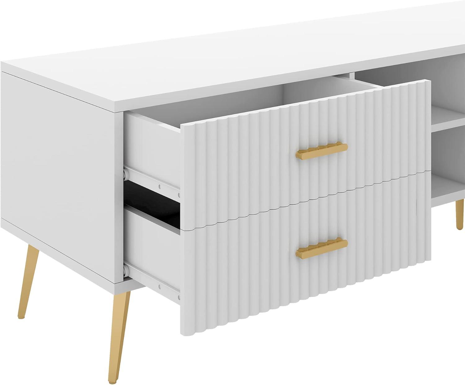After spending considerable time with this piece, we appreciate how effortlessly it balances style and functionality. The elegant white finish paired with champagne legs adds a subtle dash of sophistication to any room. Storage options are plentiful and thoughtfully designed-two drawers,two cabinets,and three shelves provide ample space to neatly organize our media devices, game consoles, and accessories. The wear-resistant tabletop and sturdy MDF construction gave us confidence in its durability, easily supporting our large TV without any wobble or strain. Assembly was straightforward and manageable alone, though having a second person handy sped up the process.