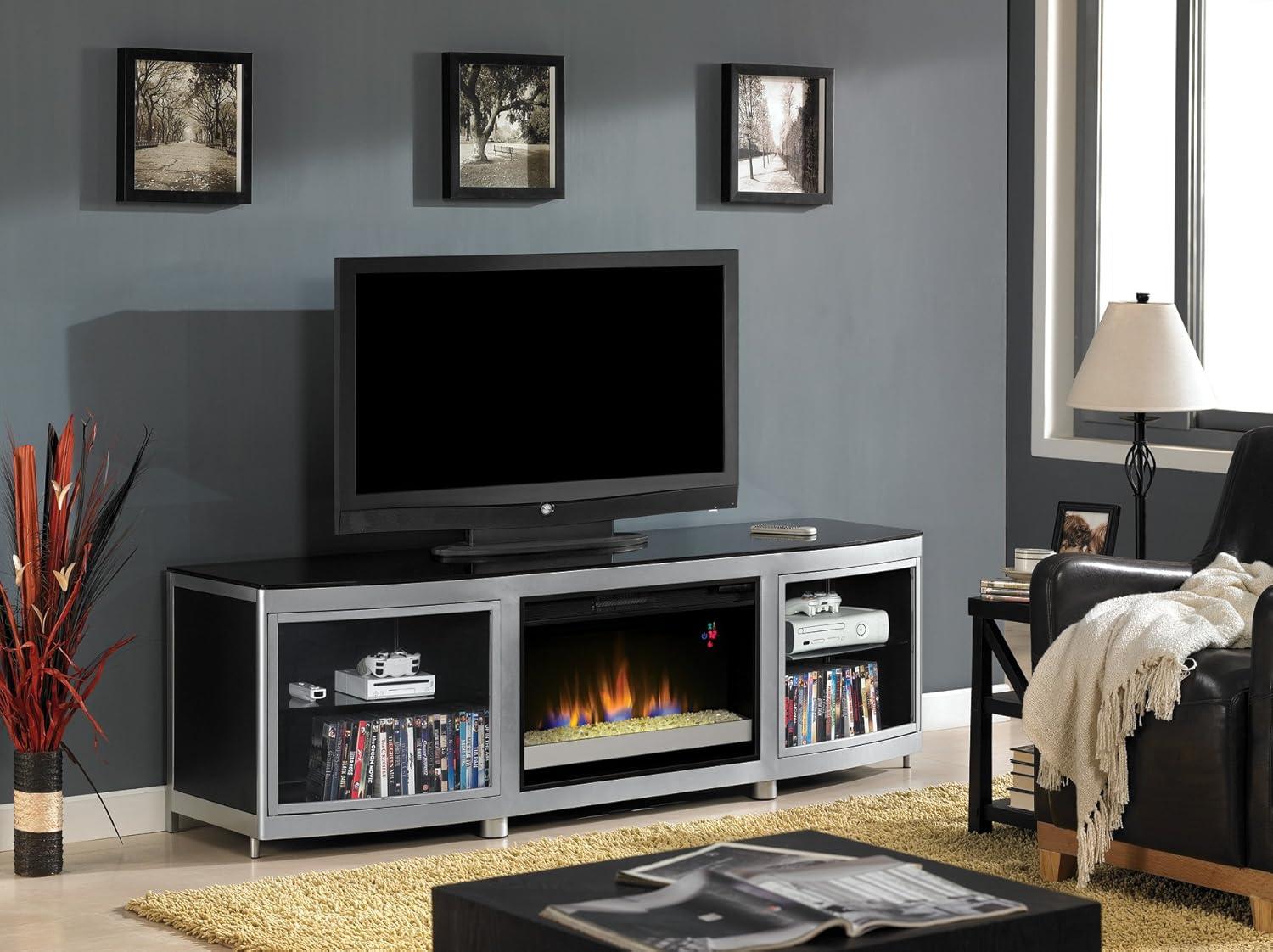 The blend of silver and black tones brings a refined edge to any contemporary space,effortlessly bridging minimalist aesthetics with bold accents. The sleek metal finish not only enhances the overall visual appeal but also highlights the sharp, clean lines of the bow front design. This combination proves incredibly versatile, seamlessly coordinating with a variety of modern color palettes-from neutral grays to vibrant accent walls. The brushed metal frame around the smoke glass doors adds just the right touch of industrial flair, creating a sophisticated centerpiece that elevates the ambiance without overpowering the room.