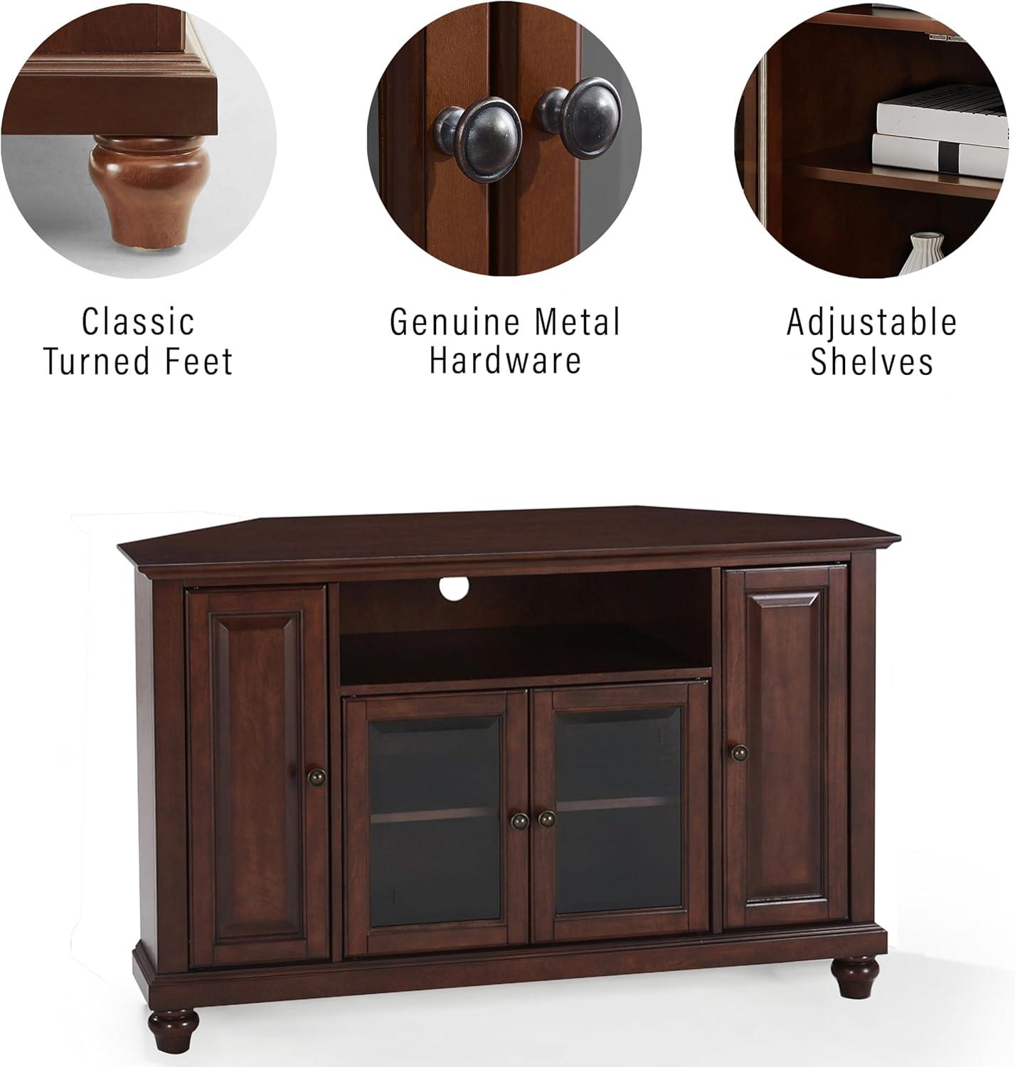 | Elegant vintage mahogany finish with antique brass hardware adds timeless charm | Maximum TV size recommended is 50 inches, which may limit options for larger screens |