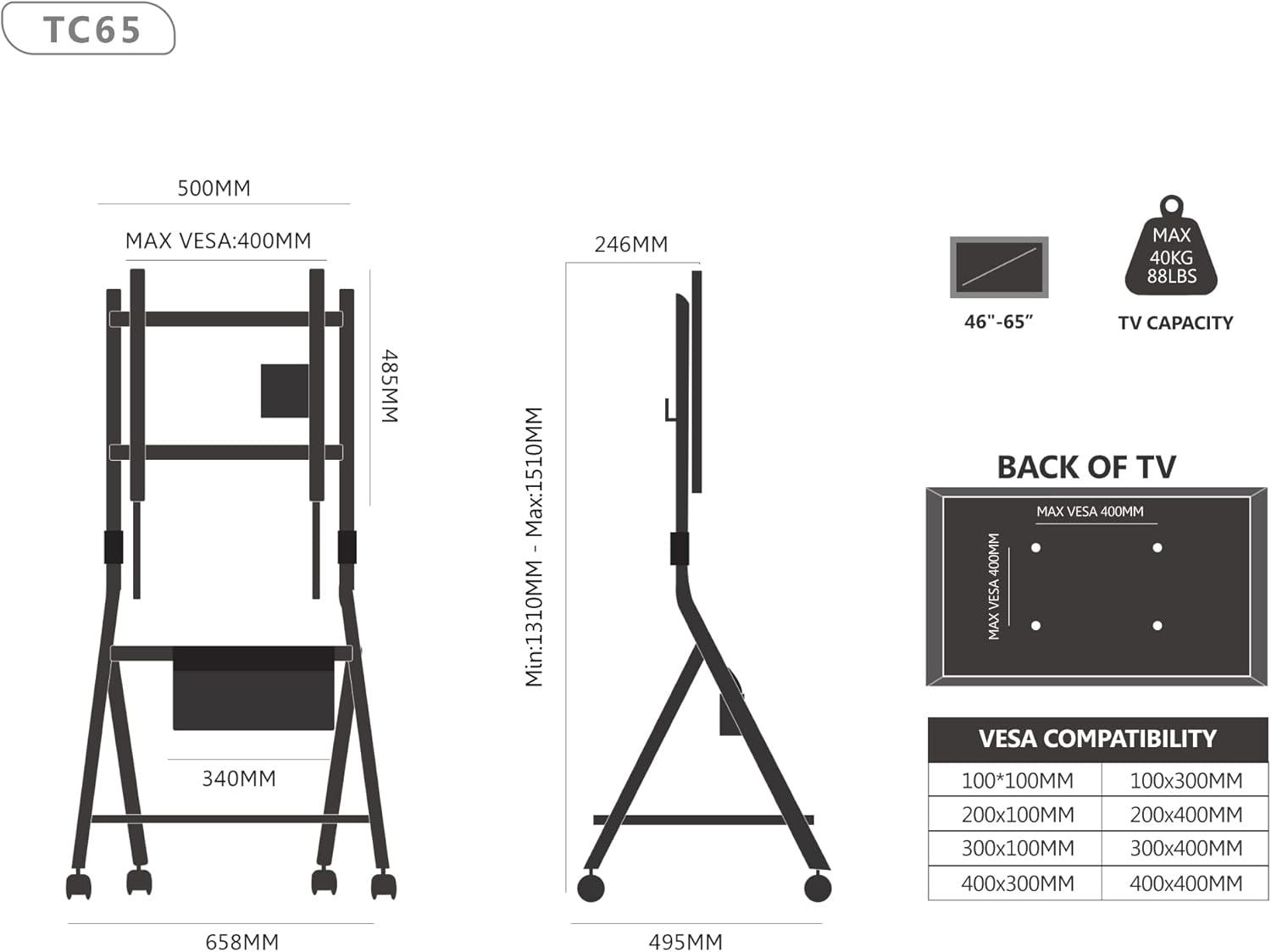 Upon unboxing and setting up this stylish mobile TV stand, we were immediately impressed by its sleek, modern design that fits perfectly into a variety of spaces-from offices and living rooms to hotel rooms.Its compact corner structure saves space without compromising on stability, supporting TVs ranging from 46 to 65 inches with a solid 88 lbs capacity. The upgraded metal frame and surface protection coating give it a durable and sturdy feel, while the silent rolling wheels make it incredibly easy to move around. What stands out most is the versatile height adjustment feature, boasting 14 different levels between 1100mm and 1300mm, allowing us to tailor the viewing angle for the most cozy experience.