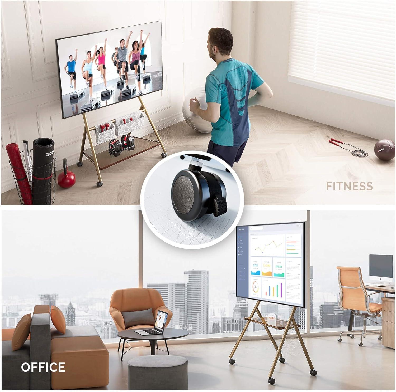 This mobile TV stand is ideal for anyone seeking flexibility and modern design without sacrificing stability. Its space-saving footprint combined with sturdy metal frames supports TVs ranging from 46 to 65 inches, making it perfect for smaller living rooms, offices, or hotel rooms where maximizing space is essential. The adjustable height option and smooth-rolling, lockable wheels create a user-friendly experience-ideal for those who value ergonomic views and mobility to easily reposition their TV across different rooms or settings.