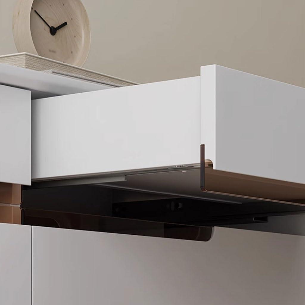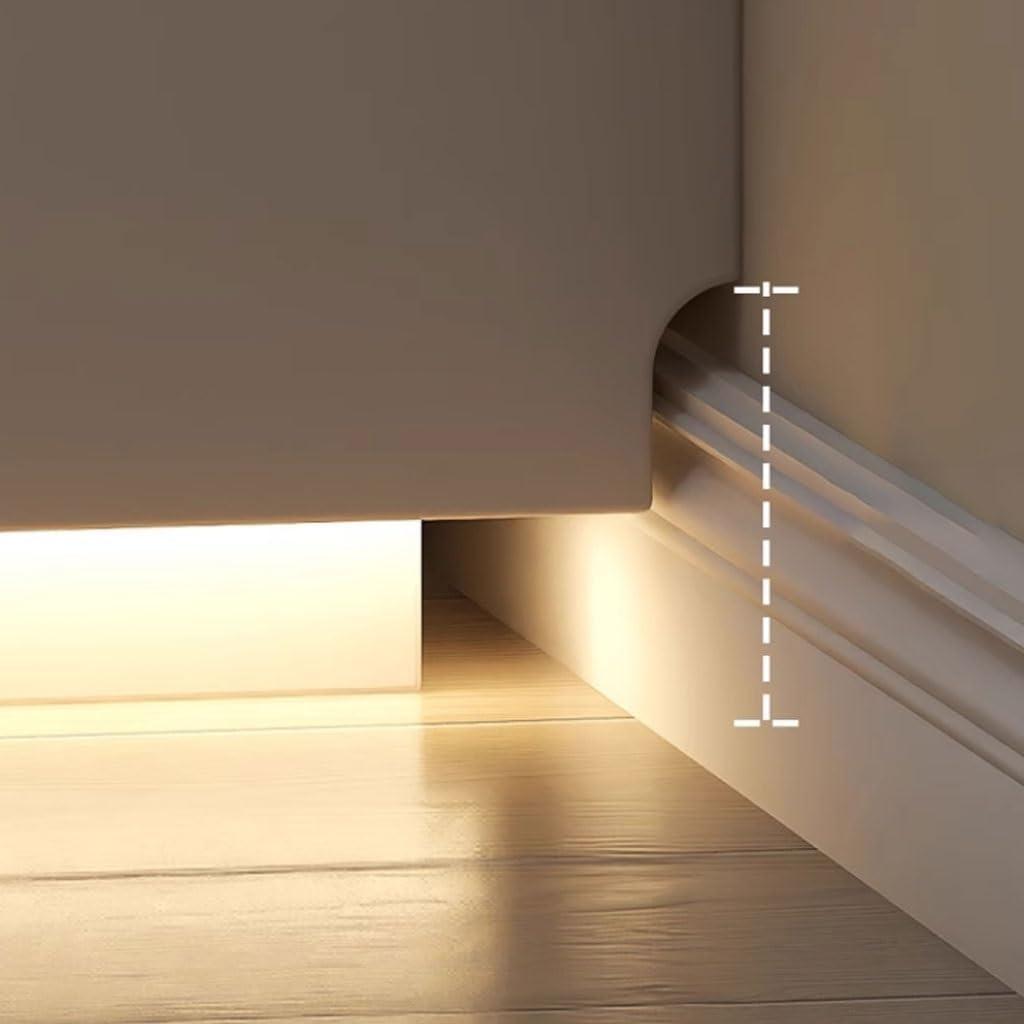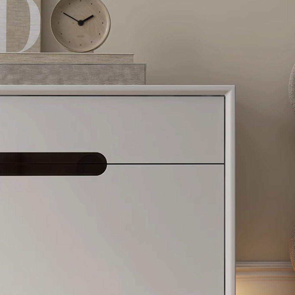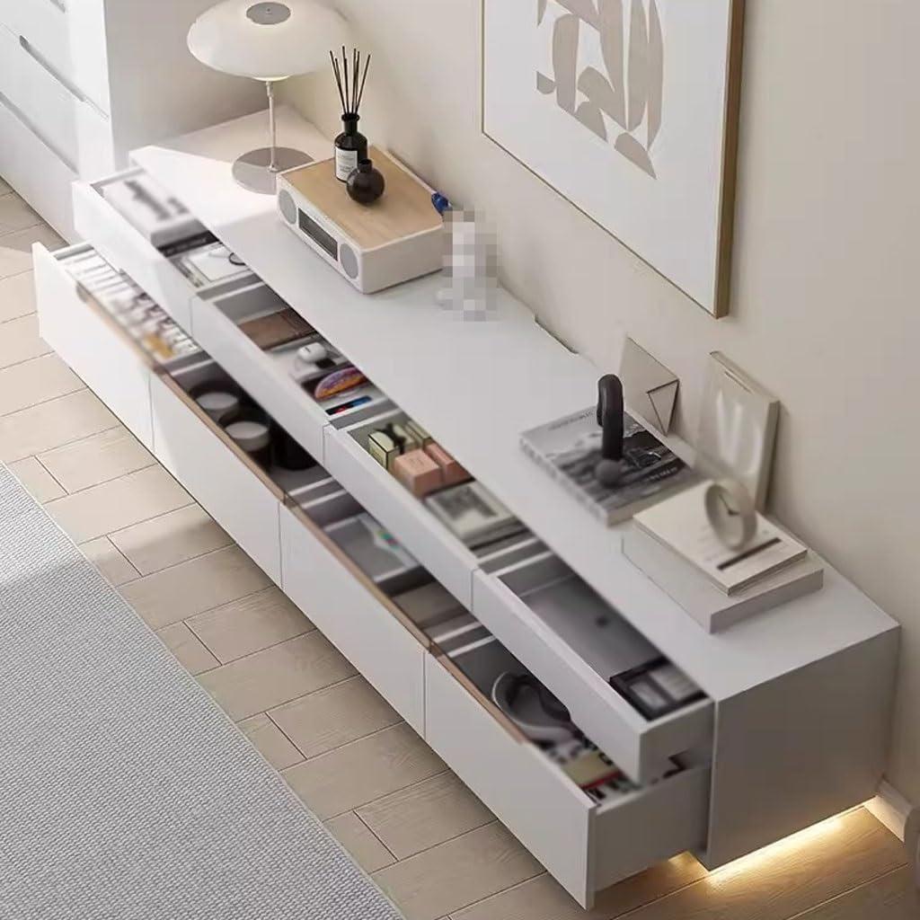 Storage-wise, the dimensions allow for well-thought-out internal organization – featuring drawers of different sizes both on the upper and lower sections to help us neatly classify our electronics, remotes, and other frequently used items. This practicality extends beyond storage; the footless,solid wood design with rounded corners feels stable and refined,fitting seamlessly into a light luxury beige and white style interior.Below is a quick overview of its dimensional benefits: