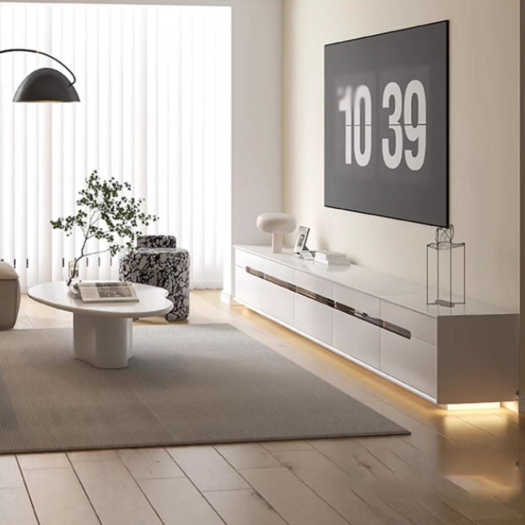 Blending modern simplicity with a touch of light luxury, this TV stand instantly elevates the aesthetic of any living room. Its clean lines and minimalist structure create a sleek, cohesive look that feels refreshing and uncluttered. The design focuses on harmony and smooth transitions, making it easy to integrate into various interior styles, especially those favoring neutral tones and understated elegance. The beige-white finish adds warmth without overpowering the space, providing a cozy yet refined atmosphere for family gatherings and relaxation.