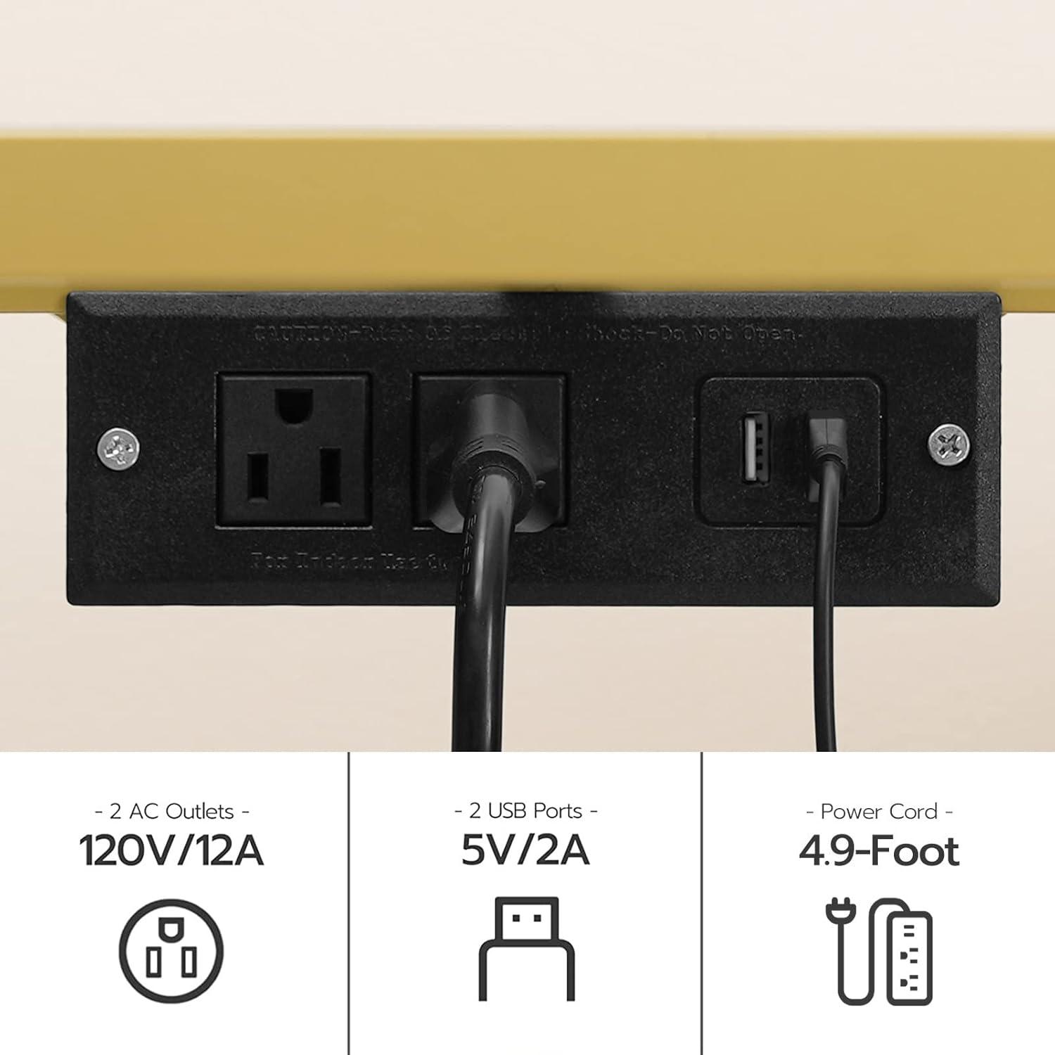 | Built-in Power Outlets & USB Ports the convenience of integrated power strip (2 outlets + 2 USB ports) helps reduce clutter from multiple cords. |