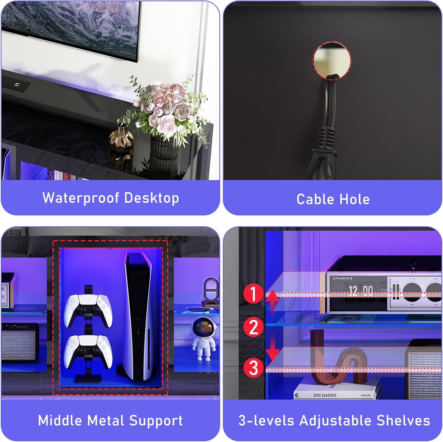 this entertainment center smartly balances power convenience, lighting flair, and adaptable storage – all wrapped in a sleek modern design. But it does come with some demands for careful assembly and usage awareness. For those willing to put in the setup effort, it truly upgrades the living room or gameroom experience.