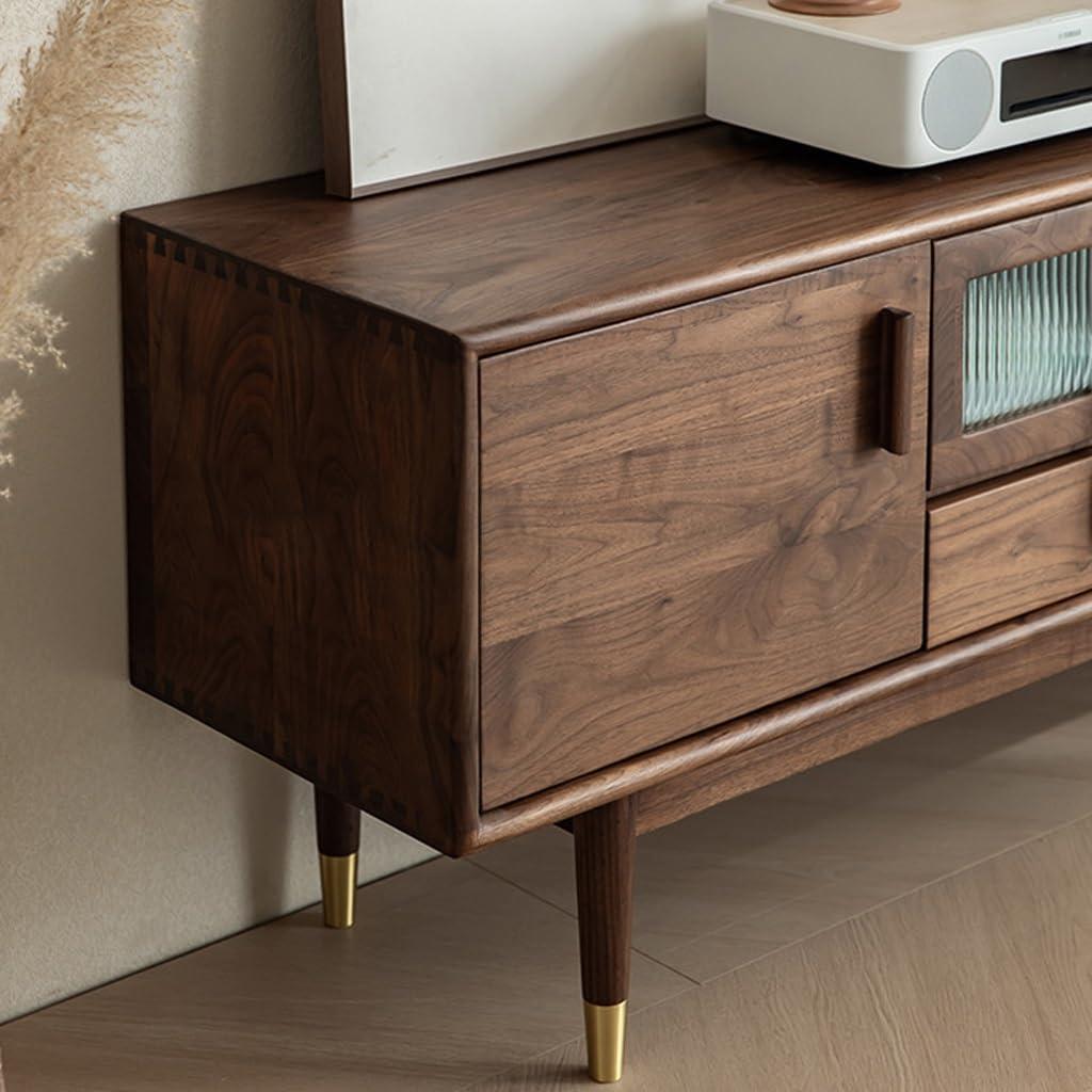 one of the standout features that caught our attention is the elegant brass stands supporting the cabinet. These legs are crafted to not only provide sturdy support but also to inject a touch of mid-century modern charm into any space. Their polished finish complements the solid wood structure beautifully, creating a harmonious blend of warmth and sophistication. The brass tone contrasts subtly with the natural wood grain, making the entire piece feel both upscale and inviting without overwhelming the room’s decor.