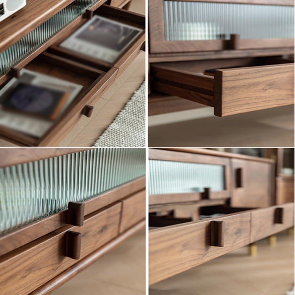 Beyond aesthetics, the clever cable management system stands out as a practical feature, maintaining a tidy setup by concealing cords through specially designed grooves and a long cable hole in the back.This not only keeps everything organized but also allows the console to fit snugly against the wall. Additional storage drawers provide spacious compartments to keep remotes, gaming accessories, and other essentials neatly tucked away, making it an all-in-one entertainment hub.