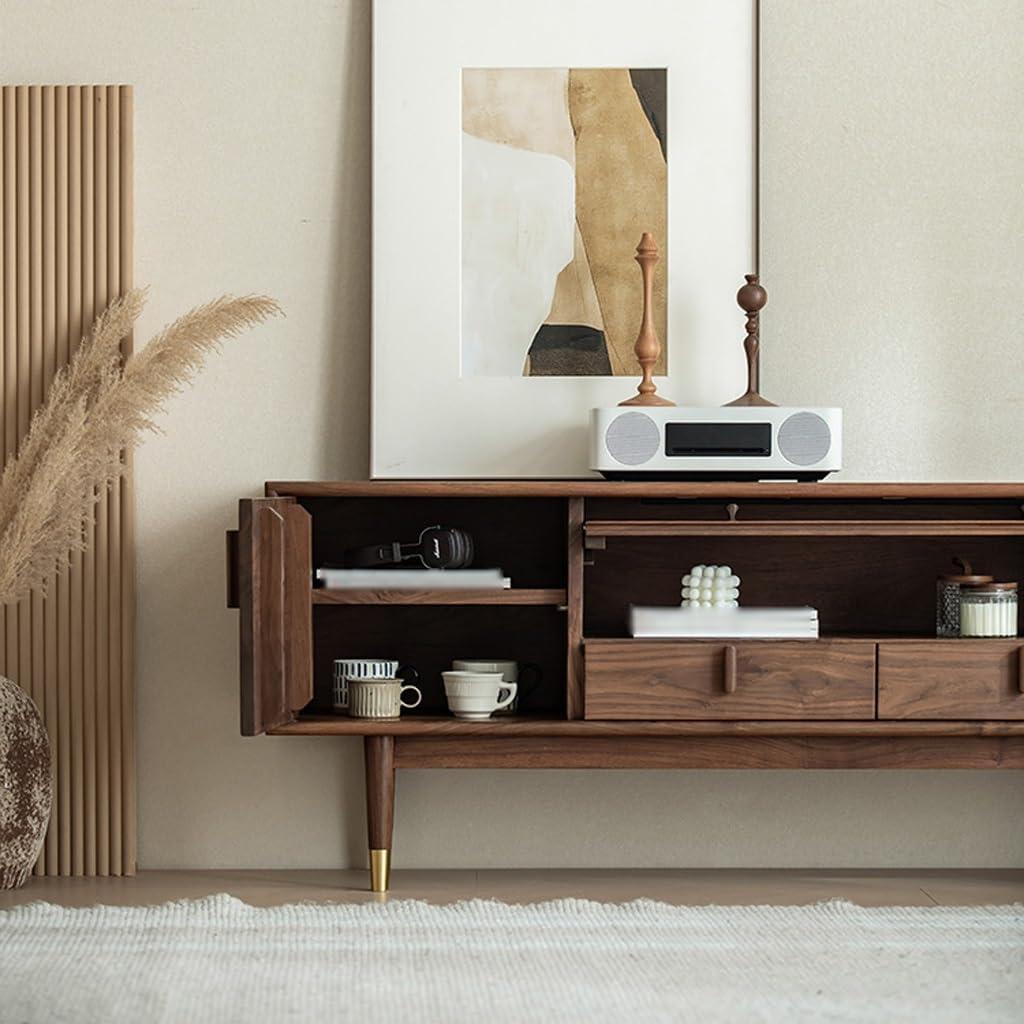 one of the standout aspects of this entertainment center is its thoughtful design that balances stylish aesthetics with practical storage solutions. with a spacious surface measuring 180*40*60 cm, it offers ample room not only for your TV but also for decorative accents like vases or lamps, allowing us to personalize our living spaces effortlessly. The solid wood construction ensures durability, and the four sturdy brass legs provide excellent stability and load-bearing capacity-perfect for holding all our media devices, books, and miscellaneous items. Below the surface, the integrated storage drawers slide smoothly, giving us discreet spaces to tuck away remotes, cables, and other essentials, helping maintain a clutter-free environment.