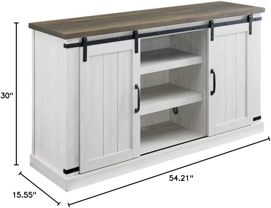 | Adjustable shelves provide customizable storage space for media equipment or decor | Sliding barn doors can occasionally feel a bit stiff without proper maintenance |