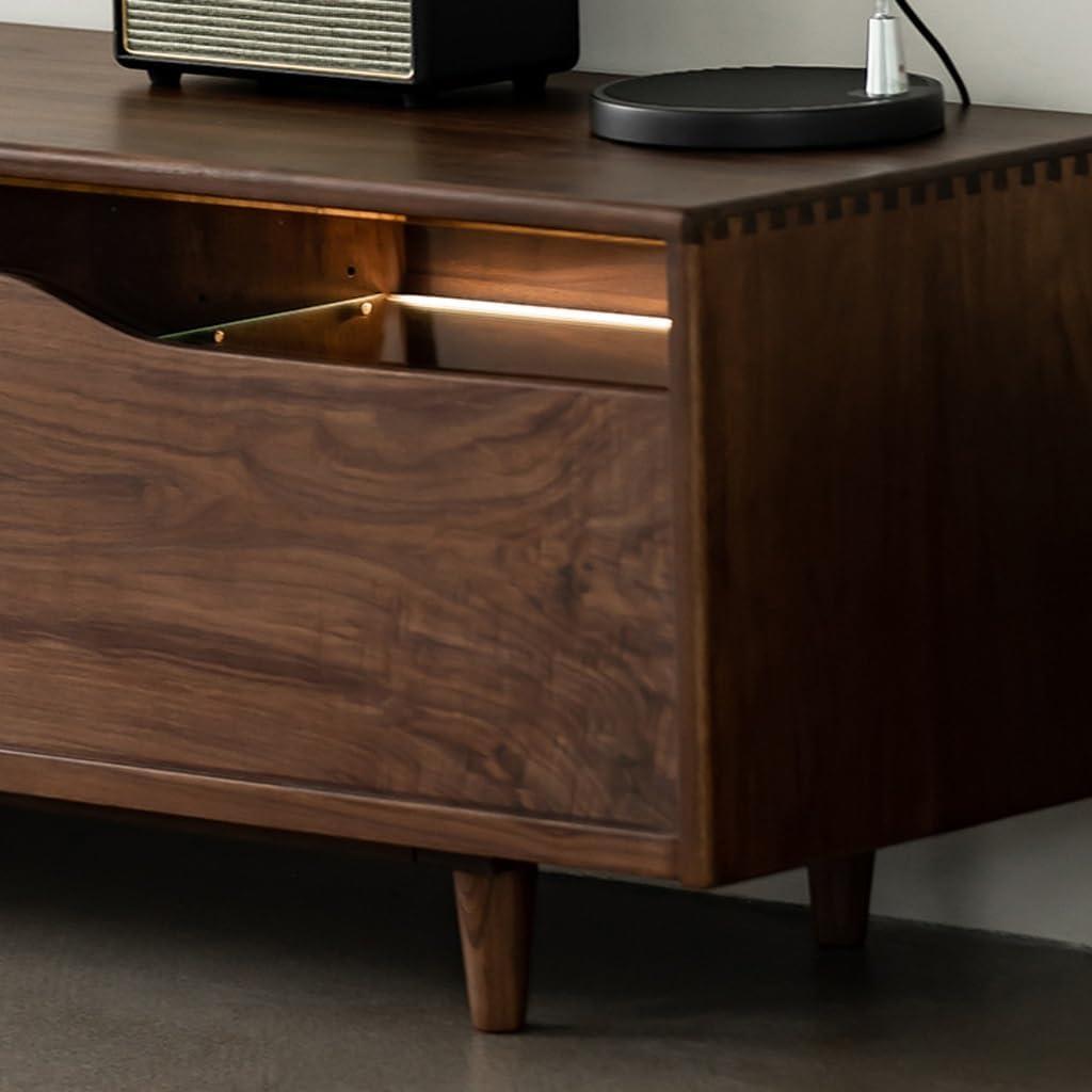 We were genuinely impressed by how the three storage drawers and cabinets transformed this piece into a multifunctional powerhouse. the drawers slide smoothly and provide ample space for keeping remotes, DVDs, and small gadgets out of sight but within easy reach.The cabinets, designed with solid wood construction, add a sturdy feel while opening up versatile storage for larger items like books or decorative pieces. Each storage compartment balances accessibility with subtle elegance, perfectly complementing the retro yet modern aesthetics of the entire unit.