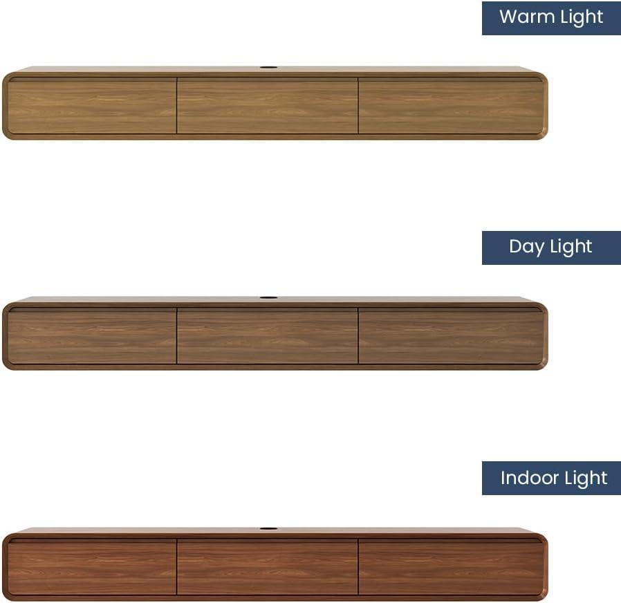 After spending time with this wall-mounted entertainment center, we appreciate its blend of modern aesthetics and practical functionality.The pre-assembled design made installation straightforward, and the sturdy construction using high-quality MDF with a walnut veneer ensures lasting durability. The three flip-down cabinet doors reveal a surprisingly spacious storage area, perfect for stashing media accessories out of sight and keeping our living space clutter-free. We especially value the thoughtful cable management system, which helps maintain a clean, organized setup without compromising remote control accessibility or device ventilation.