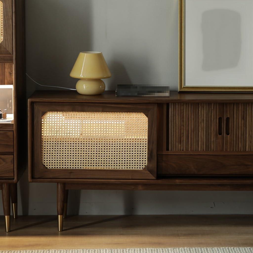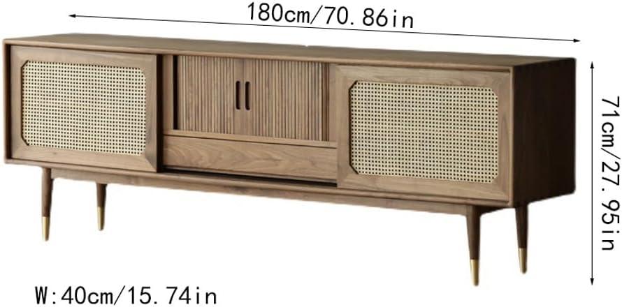 | Elegant Blend of Styles: The fusion of solid wood and rattan sliding doors gives this TV stand a charming mix of retro warmth and modern flair. | Size Is Substantial: At nearly 71 inches wide, it requires a good amount of floor space, which might challenge smaller rooms. |