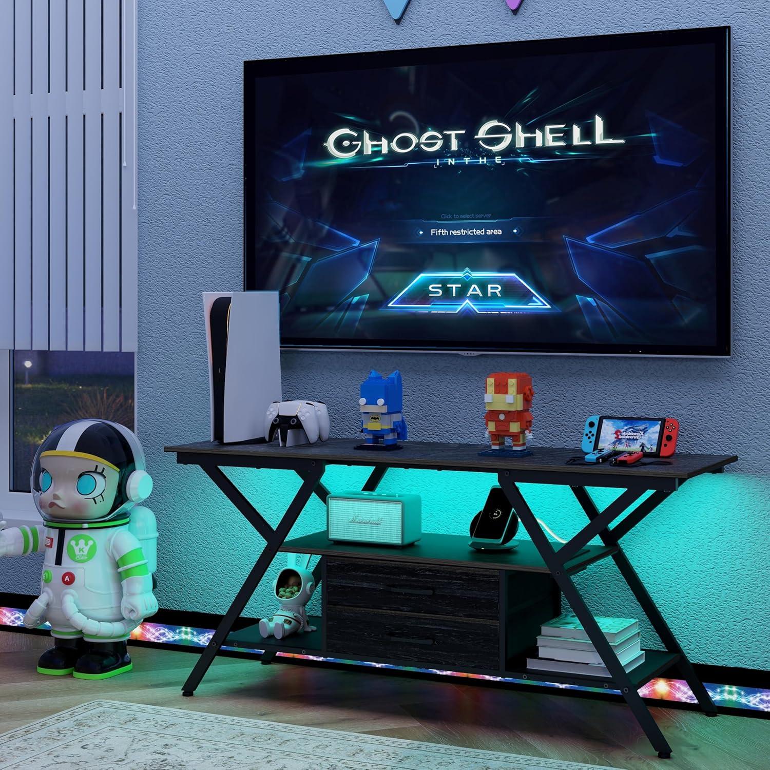In daily use, the combination of storage drawers and open shelves has been a game-changer for organization. We keep our gaming consoles, remotes, and various media accessories neatly tucked away yet easily accessible. The soft LED lighting adds a gentle glow that enhances the room’s ambiance during movie nights or relaxed gaming sessions, creating a cozy atmosphere without being intrusive. For practical safety, we’ve made sure not to exceed the weight limit of 165 lbs and keep the setup away from children and pets, ensuring both stability and peace of mind.