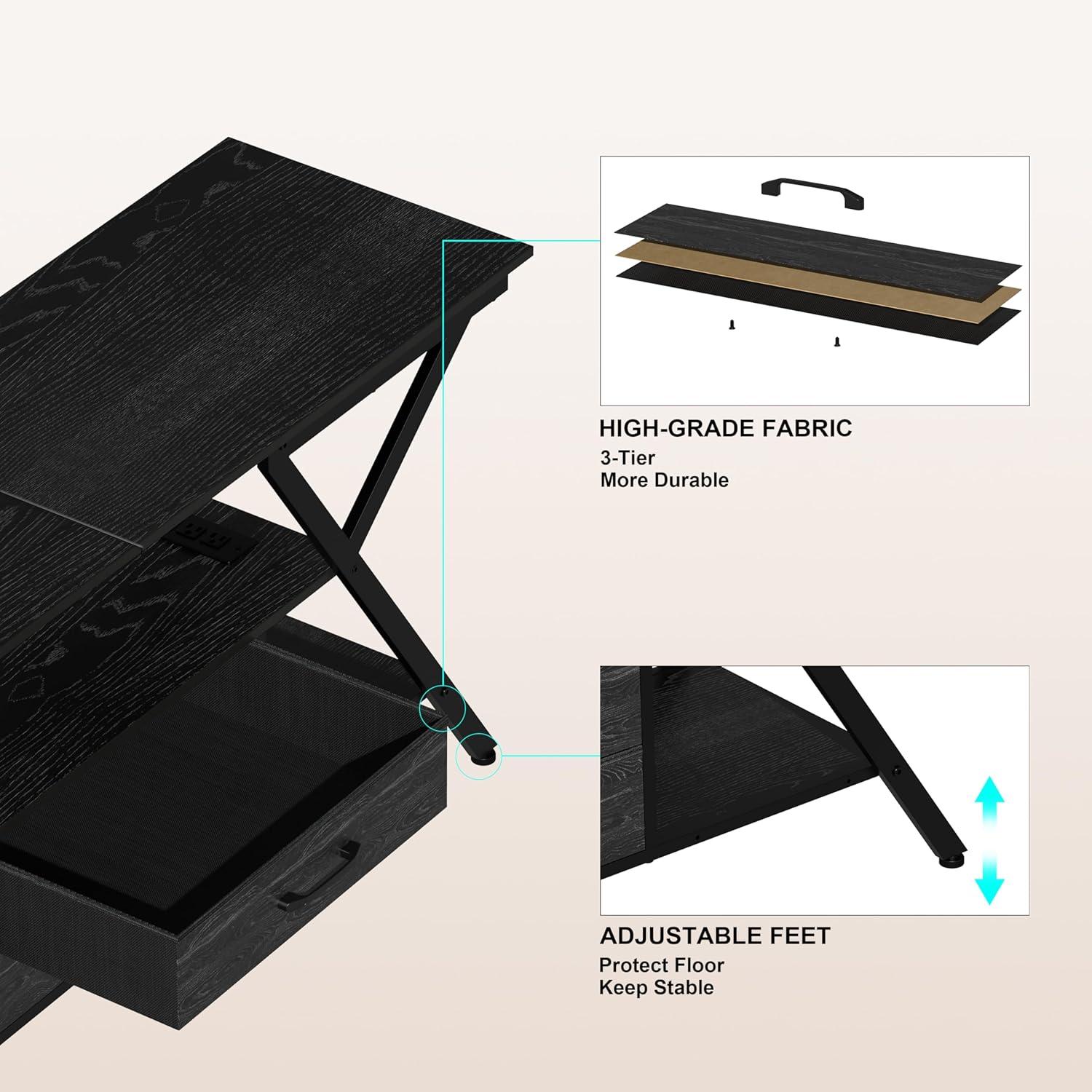 | 2 Fabric Drawers + Open Shelves | Organized storage for accessories and devices |
