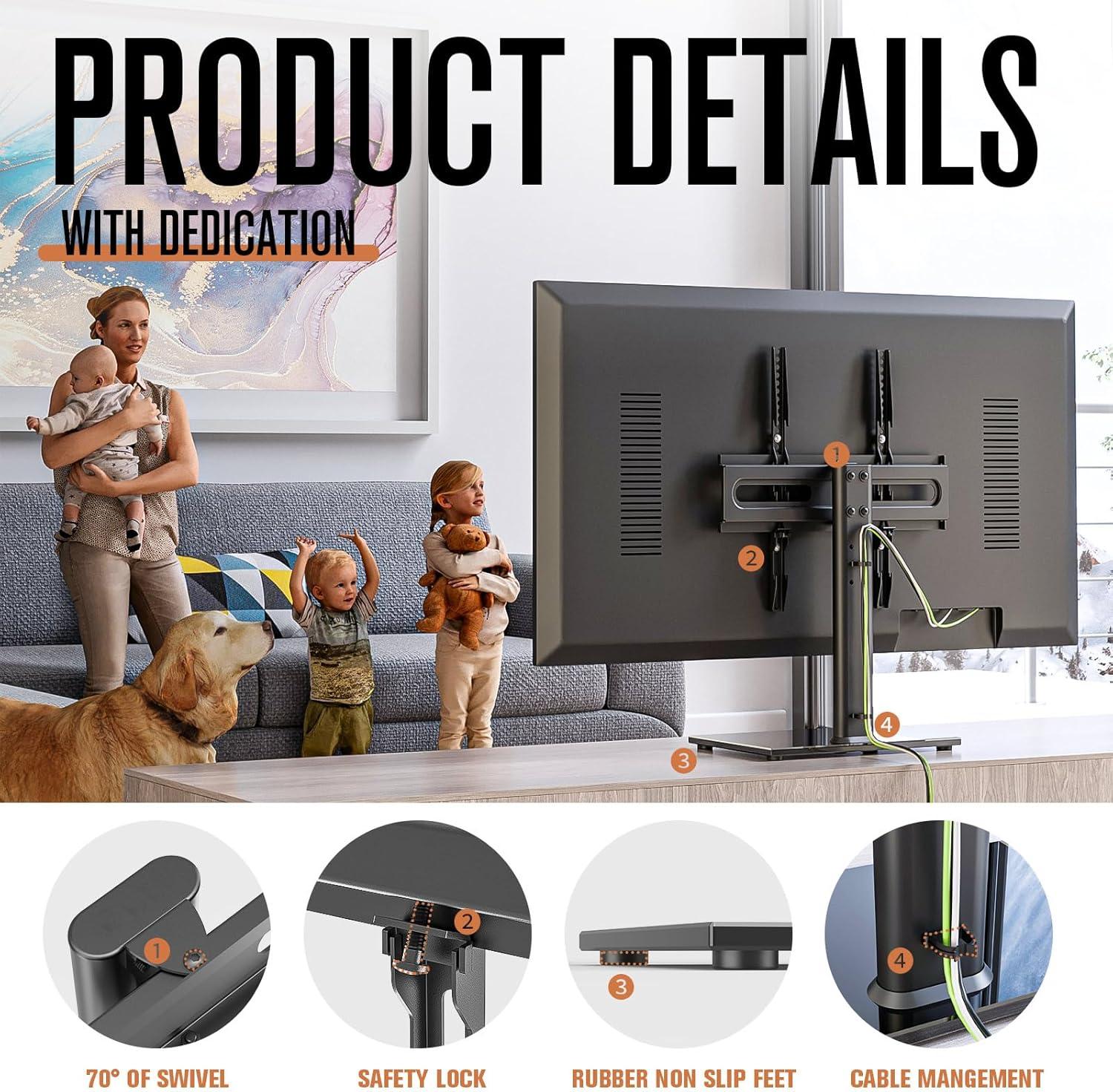 Whether you’re looking to free up floor space, achieve the perfect viewing angle, or simply upgrade your TV’s setup with a piece that blends reliability and elegance, this stand checks many boxes. It’s a strong contender for anyone seeking a universal tabletop solution for TVs between 27 and 60 inches.