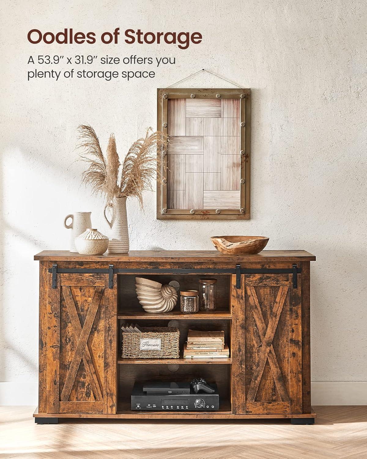the VASAGLE Rustic TV Stand with Sliding Barn Doors offers a charming blend of style, functionality, and practicality that fits seamlessly into many living spaces.Its thoughtful design-complete with adjustable shelves, clever cable management, and sturdy materials-makes it a solid choice for anyone looking to enhance their entertainment center without sacrificing storage or aesthetic appeal. Whether you want to showcase your favorite media devices or neatly tuck them away behind the sliding doors, this stand adapts effortlessly to your needs. After spending time with this piece, we appreciate how it balances rustic charm with modern convenience, making it a reliable companion for your TV setup.