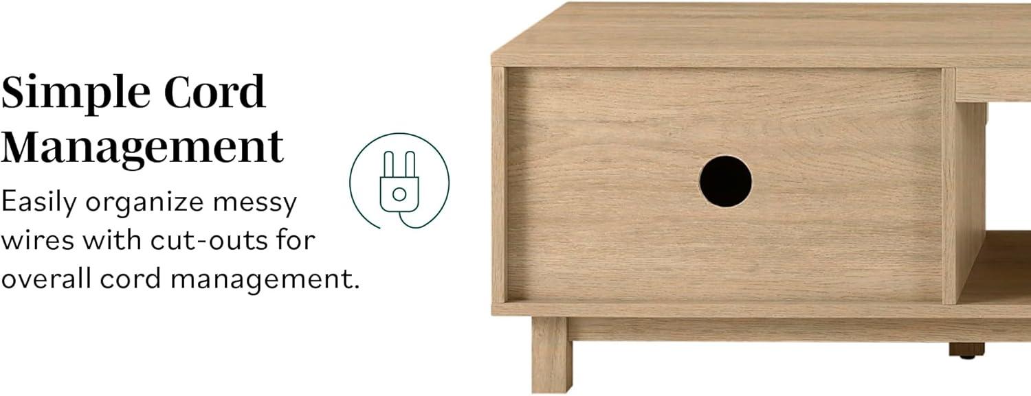 Striking the perfect balance between form and function, this TV stand enhances our living space with its artful blend of coastal charm and modern minimalism.The fluted double doors deliver a sophisticated, textured element that elevates the entire room, while the sleek, subtle hardware ensures nothing detracts from its streamlined appeal. Its neutral coastal oak finish brings warmth and natural beauty,making it adaptable to a variety of interior styles-from Japandi calmness to bold art-deco. we love how its low-profile design allows our wall-mounted TV and decorative accents to be the true focal points without overwhelming the space.