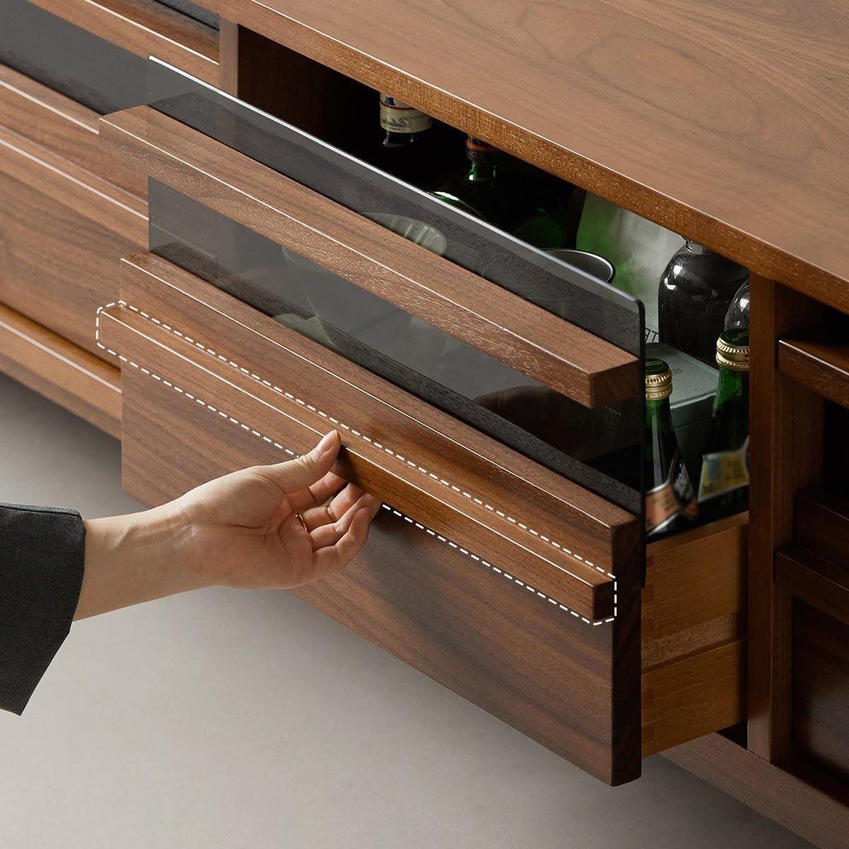 | Long, integrated handles provide easy access and add a sleek visual element | Color may vary slightly from photos due to natural wood variations and lighting |