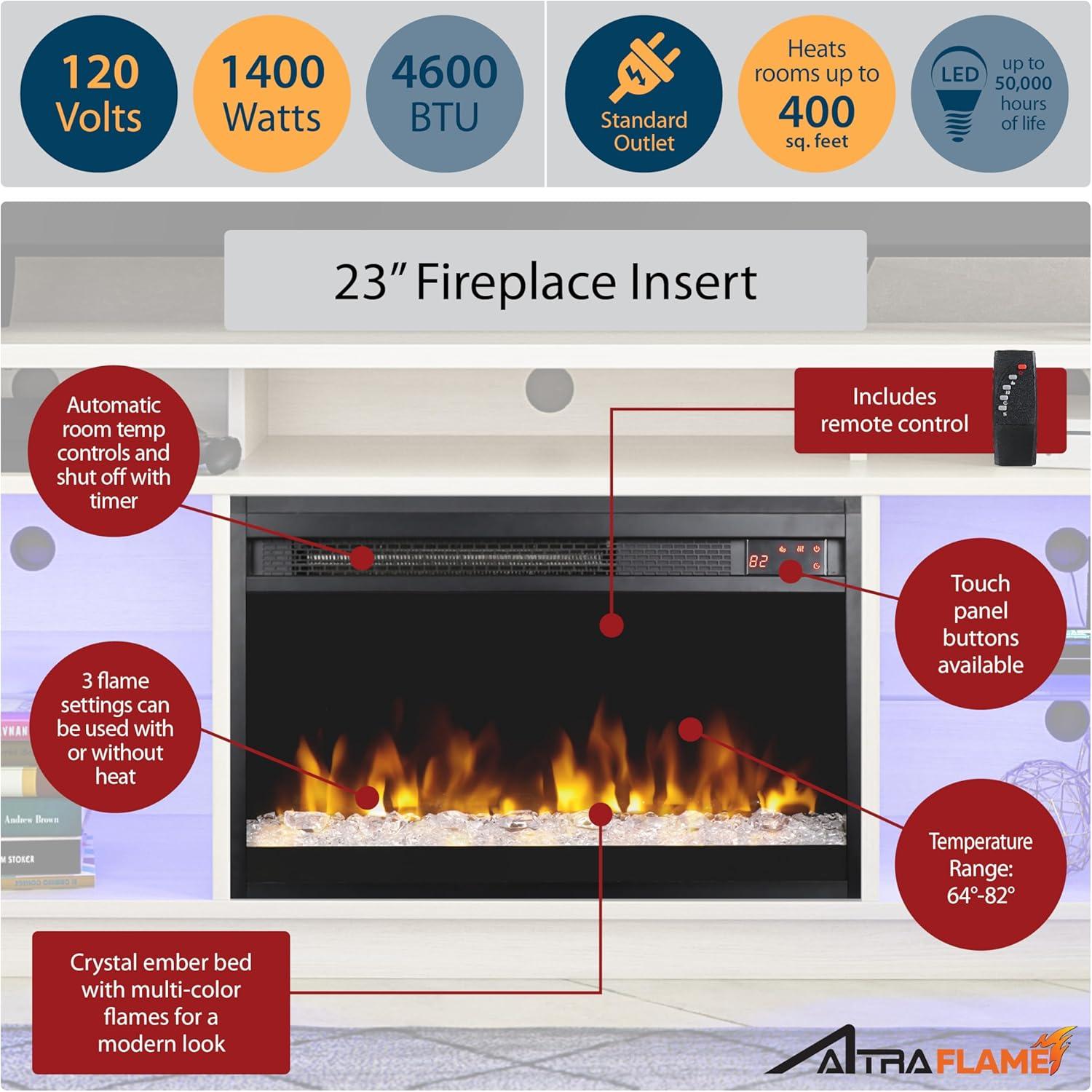 | Fireplace Size | 23″ electric fireplace with crystal ember bed |