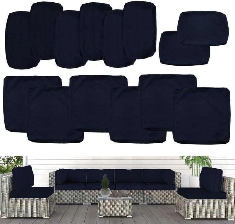 These outdoor cushion slipcovers are designed to breathe new life into your patio furniture without the expense of buying new pieces. Providing a set of 14 covers, including options for both seat and back cushions, they ensure a custom fit for various sectional couches and chairs. Crafted from durable polyester, these covers are not only waterproof but also robust enough to withstand the rigors of outdoor use. They guard against wear and tear, ensuring your cushions remain pristine and protected from spills, scratches, and dirt, particularly from children and pets. The vibrant navy blue color adds a refreshing pop to your outdoor decor, making it an attractive addition to any patio or garden space.