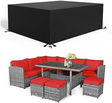 This heavy-duty outdoor furniture cover boasts impressive dimensions of 110L x 59W x 33H inches, making it suitable for various garden setups, including dining tables and sectional sofas. Crafted from robust 600D Oxford cloth, the design prioritizes water resistance and tear durability, ensuring that your patio furniture stays protected against rain, snow, and dust. With features like double-stitched seams and adjustable drawstrings, this cover provides a snug fit that resists wind displacement, allowing peace of mind during stormy weather. Furthermore, the bottom corners feature four secure snaps that conveniently hold the cover in place, enhancing its effectiveness against the elements.
