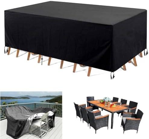 This durable cover offers an exceptional solution for protecting outdoor furniture against harsh weather conditions. Its waterproof design ensures that your patio table and chairs remain safe from rain, snow, and UV rays, thanks to the heavy-duty oxford cloth material with double-stitched seams that enhance its tear resistance. The adjustable drawstring provides a custom fit that secures the cover even on windy days, and the additional windproof buckle straps ensure it stays firmly in place. Suitable for various furniture shapes, this cover is versatile for everything from dining sets to picnic tables, making it a practical choice for any outdoor setting.
