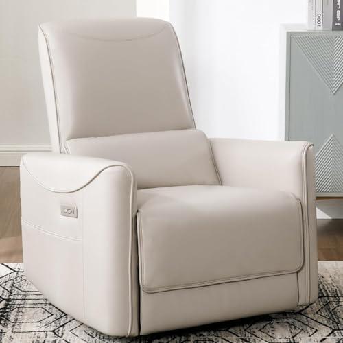 Ergonomic Single Lounge Sofa Home Theater Seating Swivel Rocking Recliner, Power Recliner Chair Swivel Glider, Nursery Chair Sofa for Living Room, Rocking Chair with Lumbar Pillow, USB Port, Storage P