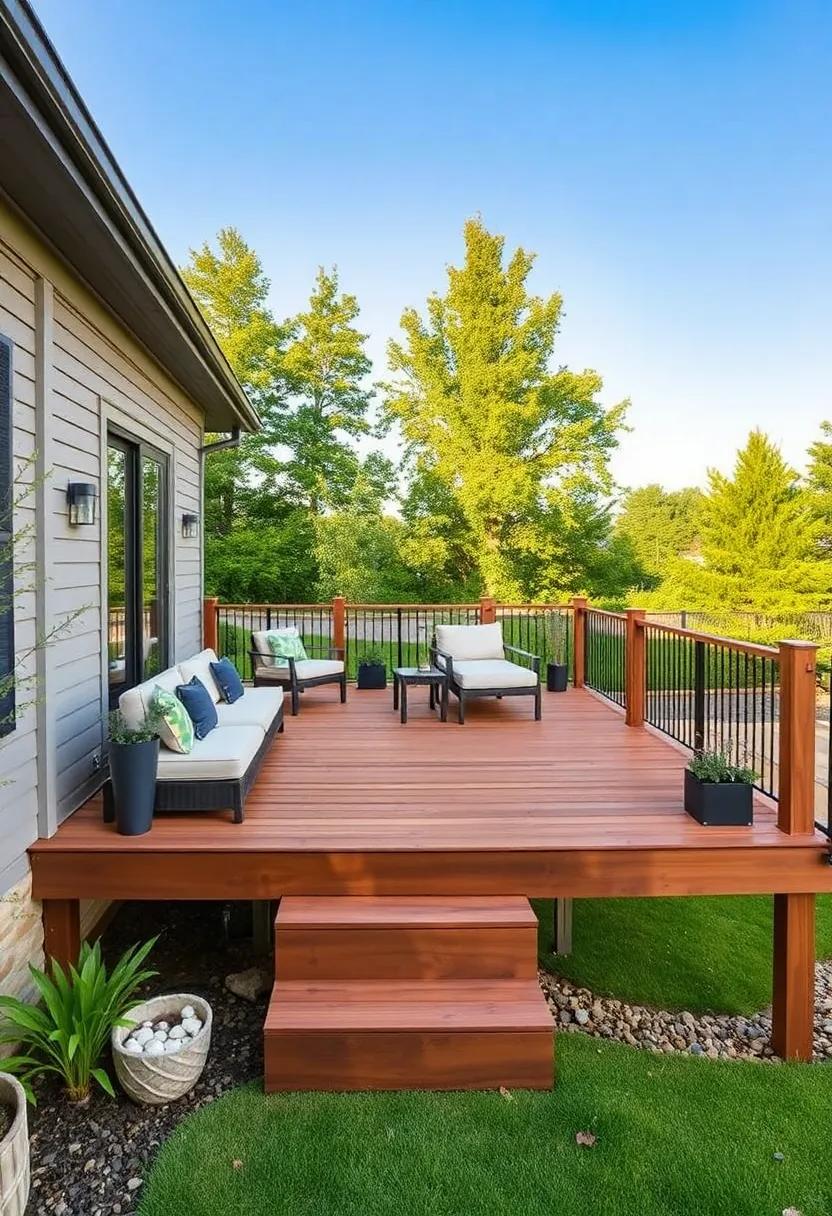 23) Elevated Decking: Build an elevated deck to connect the indoor and outdoor spaces seamlessly, providing a stylish platform for relaxation and entertaining