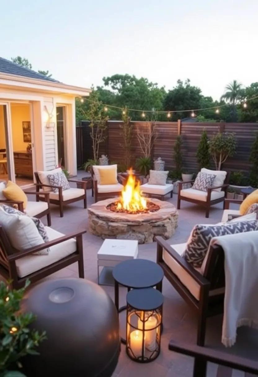 12) Fire Pits: Create a cozy gathering spot with a stylish fire pit surrounded by comfortable seating, perfect for cool evenings spent under the stars