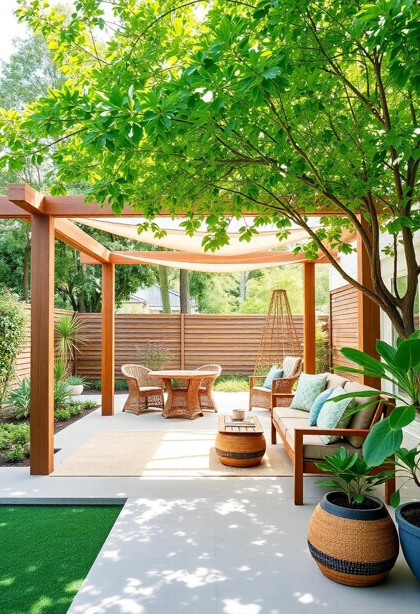 - Covered areas: Add a pergola or awning to provide shade and protection from the elements.
