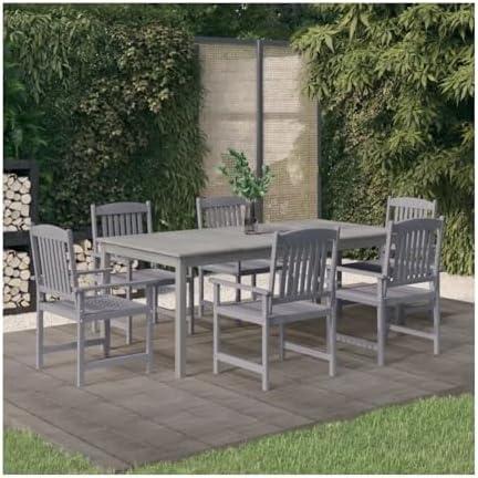 7 Piece Patio Dining Set Solid Wood Acacia Gray 3098682, Made with fine Craftsmanship
