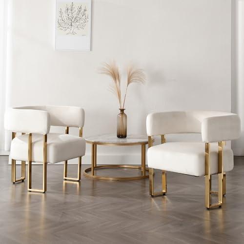 These exquisite accent chairs showcase a curved upholstered back that provides optimal comfort while elegantly supporting your back. The gold metal legs offer a chic and contemporary touch, ensuring they make a striking addition to any room. Ideal for various settings, including living rooms, bedrooms, offices, and reception areas, these chairs effortlessly blend timeless design with modern aesthetics. Designed to comfortably accommodate users up to 250 lbs, they feature a generously padded seat, making them perfect for extended sitting, whether for reading or simply relaxing.