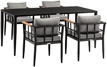 Armen Living Beowulf Modern Outdoor Patio Dining Set, 5 Piece, Black
