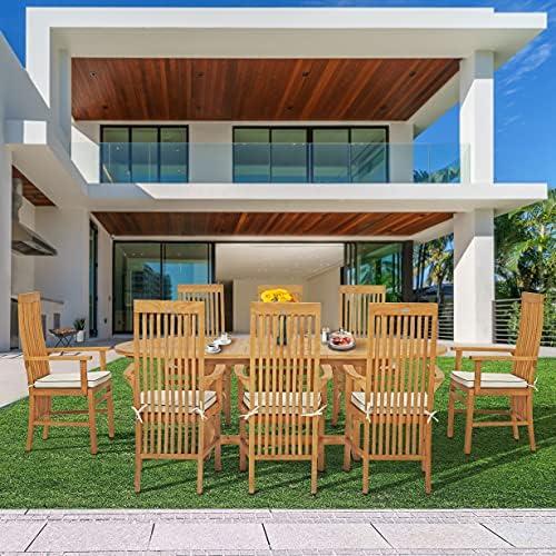 This beautiful patio dining set is a perfect addition to enhance the elegance of your outdoor space. Constructed from certified plantation-grown teak wood, it features a stunning finish that withstands various weather conditions, making it durable for year-round use. The extendable table offers flexibility, easily expanding from 59 inches to 79 inches, accommodating both small and large gatherings. Each of the six armchairs is designed for comfort, with ergonomic dimensions that make outdoor dining pleasurable for everyone. The set is not only suited for patio use but can also bring a modern touch to indoor dining areas.