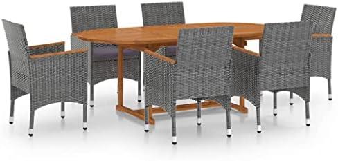 Create a stylish outdoor dining area with a 7-piece patio set featuring gray PE rattan and acacia wood