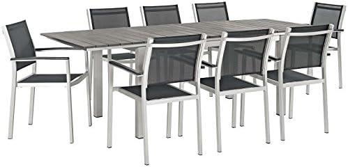 This remarkable dining set features a lightweight design that seamlessly combines classic styling with a contemporary touch, making it an ideal addition to any outdoor area. The table measures 103″x42″, providing ample space for meals and gatherings, while the ten armchairs, which arrive fully assembled, ensure that setup is a breeze. With their stackable design, these chairs offer convenient storage options when not in use. The Tekwood material mimics the beautiful appearance of teak wood but requires minimal maintenance and weathering, allowing you to enjoy its aesthetic without the intensive upkeep.