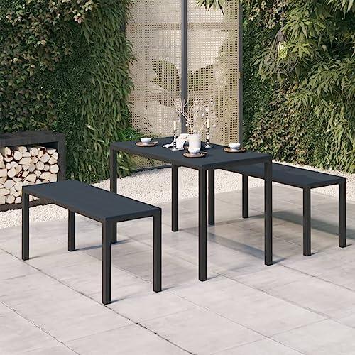 This stylish dining set is designed for durability and comfort, making it a perfect fit for any outdoor setting such as terraces, backyards, and balconies. Crafted from a robust combination of steel and WPC (Wood Plastic Composites), it offers a long-lasting solution that can withstand various weather conditions. The comfortable benches provide ample seating, while the sturdy tabletop gives you the ideal place to enjoy meals or drinks. Its sleek black finish adds a modern touch to your outdoor aesthetic. However, assembly is required, which may take some time, and an additional investment in a waterproof cover is advisable to prolong its lifespan.