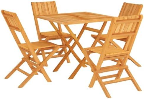 5-Piece Outdoor Dining Set in Teak with Folding Chairs and Scandinavian Style