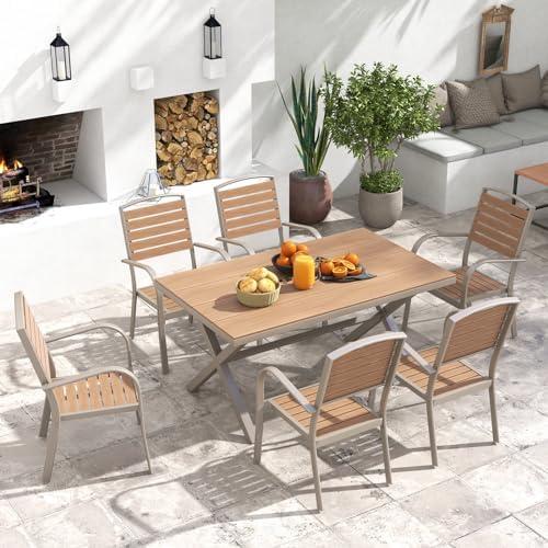 Modern Aluminum Outdoor Dining Set with Stackable Chairs & Faux Wood Grain