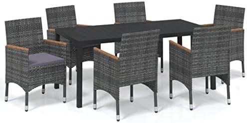 The dining set includes six Helena full-weave wicker chairs, designed for superior durability with a stunning full-weave appearance. The resin wicker construction grants resistance to rot, moisture, and general wear, ensuring the chairs look great for years. Comfort is further enhanced through included seat cushions, making it a perfect choice for lengthy meals outdoors. However, it’s important to consider that the set may require occasional maintenance to preserve its appearance and quality, and the price point may be higher compared to some alternatives. this set strikes a balance between elegance and functionality.
