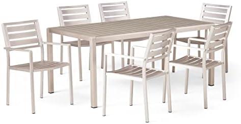 Christopher Knight Home Beenle Outdoor 6 Seater Dining Set, Gray, Silver