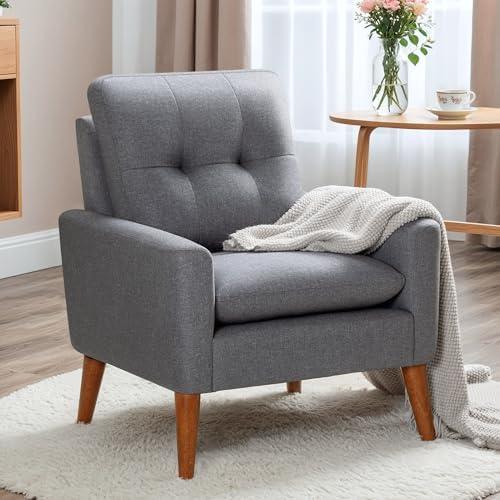 Designed with a distinctive mid-century modern flair, this accent chair combines solid wood legs with soft, tufted upholstery, making it a fantastic addition to any living space. Its compact size makes it ideal for tight areas, while its strong construction supports a maximum weight of 275 pounds, ensuring durability and stability. Moreover, the high-density sponge cushioning and breathable linen fabric provide a soft and comfortable seating experience, perfect for relaxing after a long day. Assembly is a breeze, taking just five minutes with the included instructions and toolkit, allowing you to enjoy your new chair without frustration.