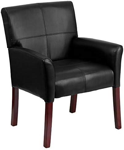 This versatile reception chair blends comfort and modern design, making it an ideal seating solution for various environments, from lobbies to libraries. With its soft, durable black LeatherSoft upholstery and eye-catching box stitching, it exudes elegance while ensuring durability. The high mahogany finished wooden legs provide both a sophisticated look and the stability you can count on. Additionally, the foam-padded cushions enhance comfort, while the padded curved arms promote better circulation, allowing your guests to lounge comfortably for extended periods.