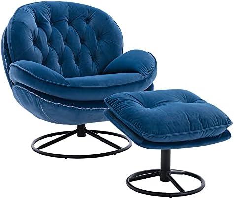Cozy Oversized Swivel Accent Chair with Footrest and Ottoman Set