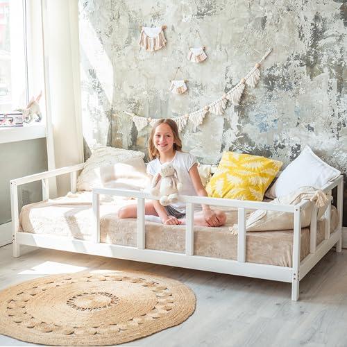 Pros include its low-to-the-ground design which enhances accessibility for young children and the use of water-based paints that prioritize health and safety. The solid construction ensures longevity and stability, supporting active toddlers. However, cons may include its assembly requirements, which could pose a challenge for some parents, and the absence of a raised guardrail may not suit all sleep preferences. For those seeking a stylish and practical bed that grows with your child, visit the link below for more details!